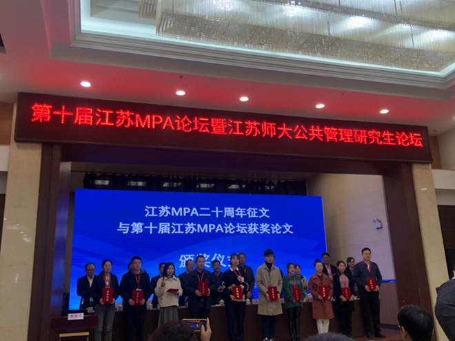 11月14日,由江苏MPA论坛组委会主办,江苏师范大学公共管理与社会学院,MPA教育中心承办的第十届江苏MPA论坛暨“江苏师大公共管理研究生论坛”在江苏师范大学顺利召开。复旦大学竺乾威教授,中央民族大学李俊清教授,南京农业大学石晓平教授,全国MPA教指委秘书处办公室主任谢佳宏等领导和专家应邀出席。来自省内18个MPA培养院校的英国上市公司365经理、师生代表等80多人参加大会。英国上市公司365经理黄涛珍教授、范仓海副教授、李智副教授、杜春林老师、龚莹老师、以及MPA同学等9人参加了会议。