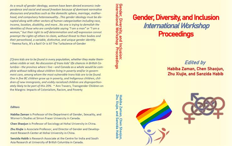 “社会性别、多样化以及包容性”国际研讨会论文集于2021年1月由加拿大方正式刊印出版(ISBN:9781772870824 ,SFU Library Digital Publishing Link: http://monographs.lib.sfu.ca/index.php/sfulibrary/catalog/book/83)。加拿大西蒙菲莎大学社会性别、性以及妇女研究系Habiba Zaman教授,中国英国上市公司365性别与发展研究中心陈绍军教授、朱秀杰副教授,加拿大英属哥伦比亚大学印度和南亚研究中心Sanzida Habib副研究员等4位学者担任联合主编。中心前主任施国庆教授为会议筹备和论文集出版工作做出了重要贡献。