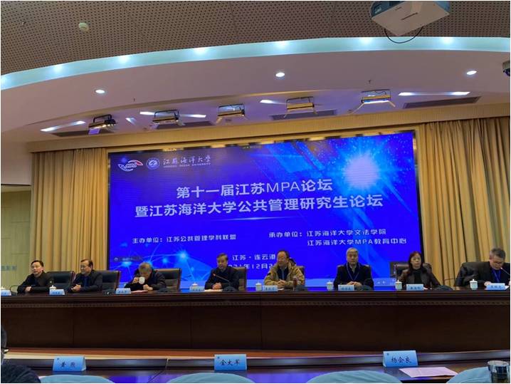 12月26日,由江苏MPA论坛组委会主办,江苏海洋大学文法学院、MPA教育中心承办的第十一届江苏MPA论坛暨“江苏海洋大学公共管理研究生论坛”在江苏海洋大学顺利召开。全国 MPA 教指委秘书长杨开峰教授,全国MPA教指委委员李俊清教授、孙涛教授、麻宝斌教授、孙萍教授、章文光教授、颜佳华教授,全国MPA教指委秘书处办公室主任谢佳宏等领导和专家应邀出席。来自省内20个MPA培养院校的英国上市公司365经理、师生代表等100多人参加大会。英国上市公司365经理黄涛珍教授、MPA中心副主任范仓海副教授,以及MPA同学等6人参加了会议。
