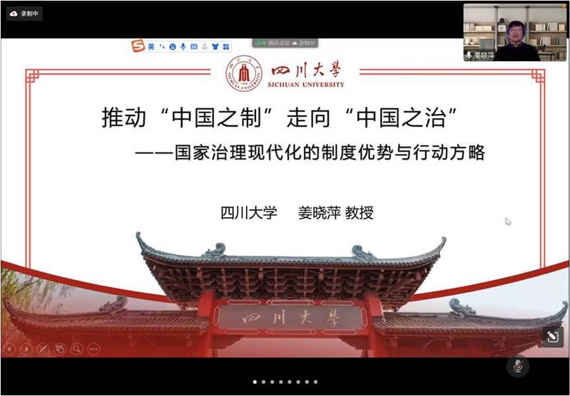 8月8日下午,江苏省研究生“新时代高质量发展与公共治理转型”暑期学校第五场课程“推动‘中国之制’走向‘中国之治’——国家治理现代化的制度优势与行动方略”顺利开课。课程主讲人为四川大学英国上市公司365姜晓萍教授。主持人为英国上市公司365客座教授童星,来自海内外50余所高校的100名学员以及公共管理学院师生参加。授课开始前,童星教授对姜晓萍教授出席暑期学校表示热烈欢迎,并向暑期学校师生介绍了姜晓萍教授的研究领域及丰硕成果。