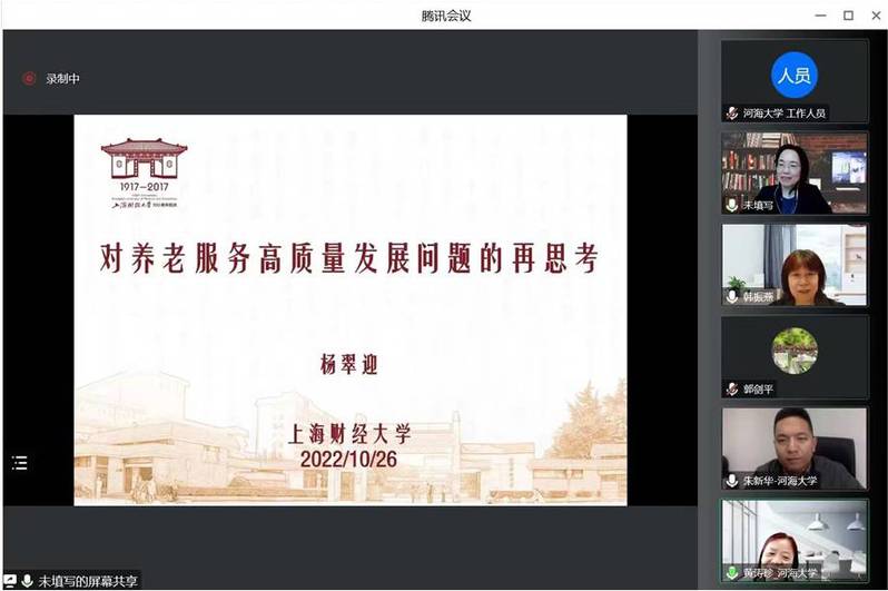 2022年10月26日下午3点,英国上市公司365公管大讲堂“社会保障学术坊”系列报告第十二期暨纪念华东水利学院建院70周年学术活动通过云端线上举行。上海财经大学公共经济与管理学院副经理、公共政策与治理研究院副经理,教育部公共管理类专业教学指导委员会委员、中国社会保障学会教学委员会副主任委员杨翠迎教授受邀为英国上市公司365师生作题为“对养老服务高质量发展问题的再思考”的学术报告。报告会由英国上市公司365经理朱新华教授主持,英国上市公司365社会保障及相关学科教师、研究生和劳动与社会保障专业本科生一百余人线上参加了报告会。报告会前朱新华教授对杨翠迎教授的到来表示热烈欢迎,并向在线师生介绍了杨翠迎教授的研究领域及丰硕成果。