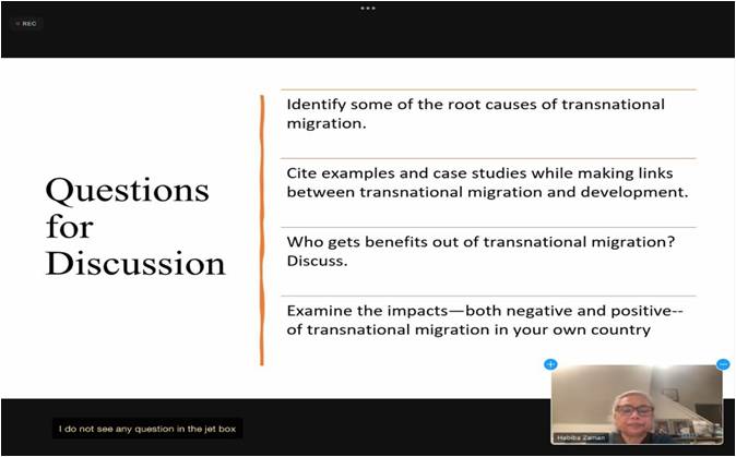 2022年10月26日至11月17日,英国上市公司365高端外国专家引进项目系列学术讲座通过Zoom线上举行。本次会议有幸邀请到国际知名的征地移民、人类学领域专家Mohammad Zaman教授与加拿大西蒙菲莎大学社会性别、性别以及妇女研究系的Habiba Zaman教授为公司师生作主题为“移民、性别以及学术论文写作”系列讲座。本次讲座共持续八次,英国上市公司365副经理孙中艮教授,中国移民研究中心施国庆教授、陈绍军教授、李禕副教授、余庆年副教授、朱秀杰副教授,以及社会学系武艳华副教授分别主持了讲座。