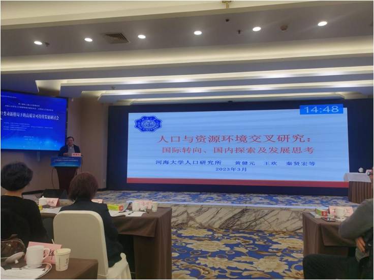 黄健元教授以《人口与资源环境交叉研究:国际转向、国内探索及发展思考》为题作大会主场报告,介绍了国内外在人口与资源环境交叉领域的研究议题以及取得的代表性成果,探析了人口与资源环境交叉研究的发展方向。