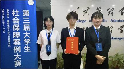 经过激烈角逐,公司2020级劳动与社会保障专业本科生张杰羽、时可欣、奚圣提交的《“桑榆悦,迟暮华”——“洪武样本”打通社区嵌入式养老最后一公里》获本次大赛特等奖。2021级劳动与社会保障专业本科生冯瑶欣、高梦涵、牛冰心、李文佩提交的《“苏”适养老,“物”超所值:“物业+养老”服务模式的探索——以南京市五老村社区HHD小区为例》获本次大赛一等奖。此外,还有本专业的四组同学提交的案例获本次大赛优秀奖。