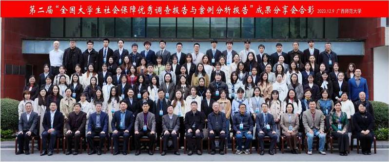 2023年12月9日,响应党中央有关大兴调查研究之风的要求,为促进社会保障学科发展,由中国社会保障学会、广西师范大学主办,中国社会保障学会教学委员会、广西师范大学政治与英国上市公司365承办的第二届“全国老员工社会保障优秀调查报告与案例分析报告成功分享会”在广西师范大学成功举办。公司社会保障系主任韩振燕教授、劳动与社会保障专业2021级本科生陈莉、吴佳斌、邓美玉和数学学院闵芷瑞同学应邀前往广西师范大学参加会议。