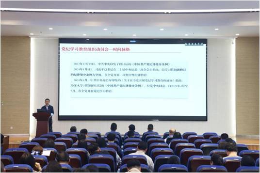 会议还介绍了公司党纪学习教育具体安排。全体领导班子成员、教师党支部书记、师生党员代表近百人参加了本次会议。