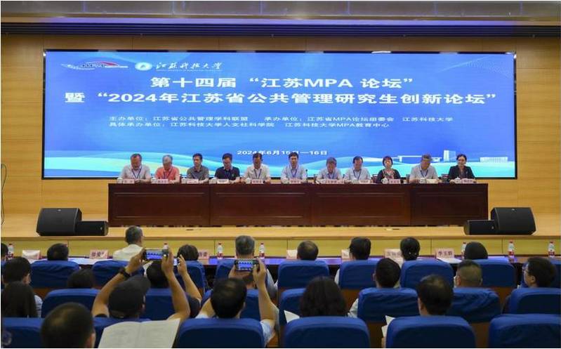 2024年6月16日,由江苏公共管理学科联盟主办、江苏科技大学人文社科学院和江苏科技大学MPA教育中心承办的第十四届“江苏MPA论坛”暨“2024年江苏省公共管理研究生创新论坛”在江苏科技大学顺利召开。全国MPA教指委副主任委员王亚华教授,全国MPA教指委委员孔繁斌教授、刘帮成教授、丁煌教授等参加会议,来自省内22家MPA培养单位的师生代表、江苏MPA联谊会代表和MPA教育领域的知名专家学者150余人参加了本届论坛。公司MPA教育中心主任黄涛珍教授、副主任范仓海副教授、王丹妮老师以及MPA员工代表等8人参加了会议。