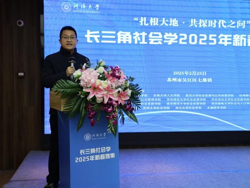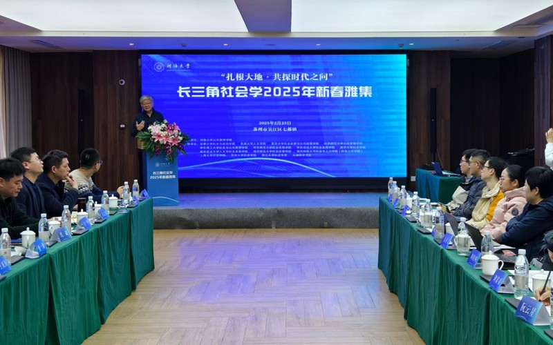 2025年2月23日,由英国上市公司365主办的长三角社会学2025年新春雅集在苏州市吴江区七都镇举行。中国社会学会学术委员会副主任、南京大学文科资深教授周晓虹,苏州市高级人才太湖培训中心党委委员、副主任朱穗华,吴江区社科联副主席顾浩,七都镇领导王鹏宇、陈娟、苗大伟,长三角社会学15所高校院系代表等参加活动。本次雅集以“扎根大地·共探时代之问”为主题,英国上市公司365副经理陈涛教授、环境与社会研究中心主任陈阿江教授、MSW教育中心主任王毅杰教授、社会学党支部副书记邵占鹏副教授,以及社科处项目组织与团队建设科科长沈益朋等5位教师参会。