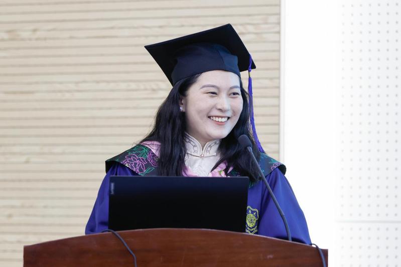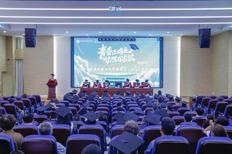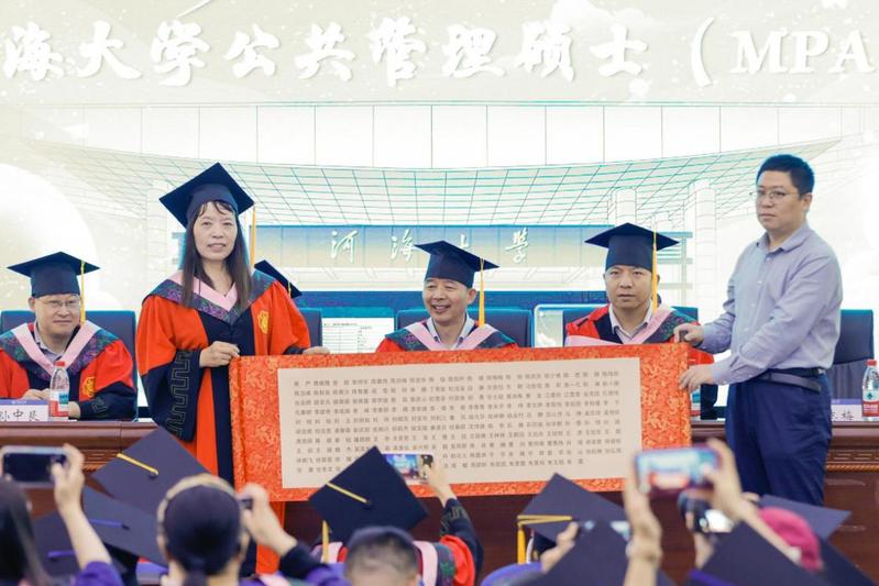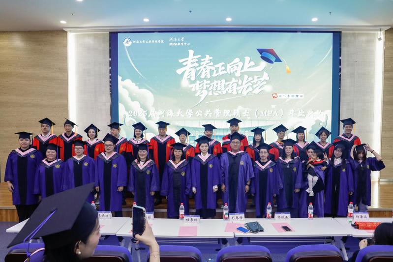 2022级MPA毕业生代表杭雪菲回顾和总结MPA学习生涯,并寄语同学们始终以“河润万物”的谦卑、“海纳百川”的格局,在新时代的史诗中,以“河海蓝”连接四海,续写属于河海人的荣光。