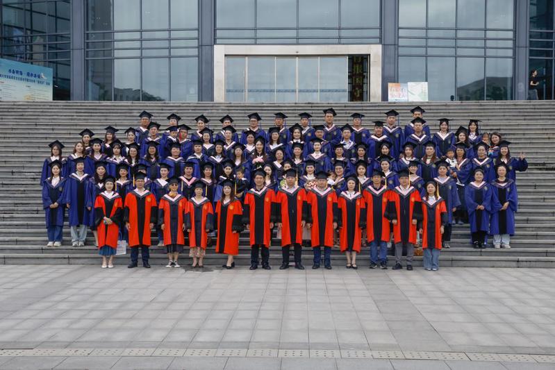 典礼结束后,毕业生们与出席领导和导师一起至图书馆前合影。