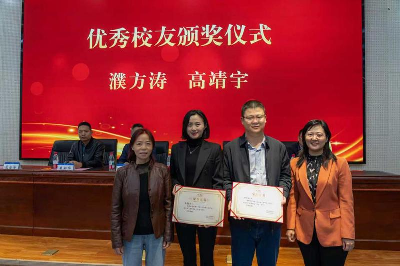 赵冰处长与黄涛珍主任共同为优秀员工高婧宇、濮方涛颁奖。