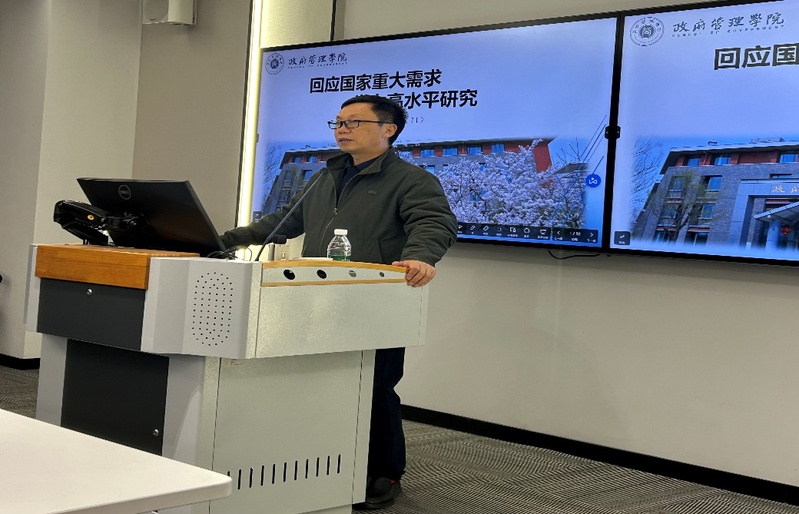 在讲座过程中,周建国教授聚焦于高水平研究,将讲座内容拆解为三大模块,层层递进地展开分析。第一部分从公共管理基础理论、公共管理难点问题及国家治理迫切问题出发探讨高水平研究的问题来源。第二部分结合党的二十大报告、二十届四中全会以及十五五规划,阐释高水平研究文本的构成要素,涵盖文本论证的合理性、自洽性以及前期成果的高支持力等。第三部分阐述了高水平研究的管理支撑,系统展示了组织规划、团队建设和咨询平台对于高水平研究的贡献。