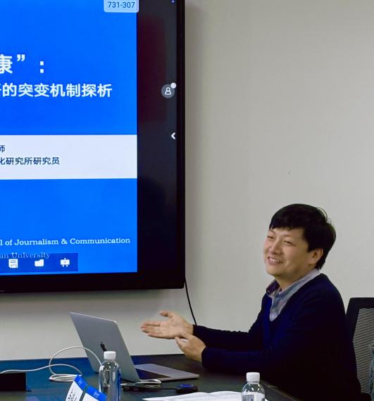华中科技大学社会学院胡鹏辉副教授从《情感迷航与情感导航:现象级综艺的生成机制及其文化逻辑》切入进行剖析。报告从情感体制视角,分析现象级综艺节目如何回应和引导观众的结构性情感困境,为其提供情感导航的实践场域与意义框架。
